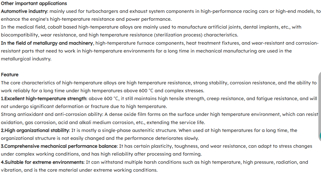 hot line: 86-510-80628100high temperature alloy refers to a type of metal material based on iron, nickel, and cobalt, which can work for a long time under high temperature and certain stress above 600 ℃. it has high high-temperature strength, good oxidation resistance, and corrosion resistance.